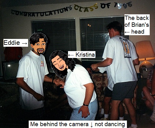 I had been in this house four times before, and I had never seen it this full. People were sitting on couches, in chairs, on the floor, and on the stairs. A streamer that said “CONGRATULATIONS CLASS OF 1996” hung from the wall.